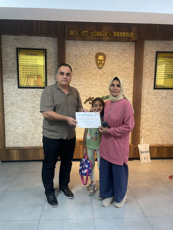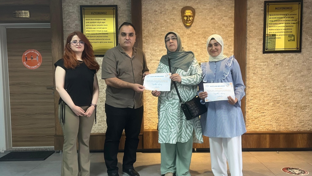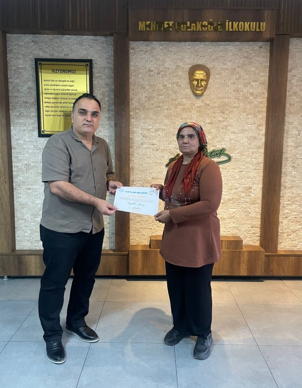 Gaziantep Valiliği ve Gaziantep İl Mlili Eğitim Müdürlüğünce yürütülen Aile Eğitimi Okulu Projesi; ebeveynlerin çocuklarının gelişim sürecine daha bilinçli bir şekilde dahil olmalarını sağlamak, okul-aile iş birliğini güçlendirmek ve çocukların her alanda daha başarılı ve mutlu bireyler olarak yetişmelerine katkıda bulunmayı amaçlamaktadır. Bu doğrultuda okulumuzda uygulanan eğitimlerle velilerimizin çocuklarına karşı farkındalıklarını artırmaya ve onlara bilinçli birer ebeveyn olmaları yolunda destek olmaya çalıştık. Eğitim öğretim yılı sonu itibariyle de bu eğitimlere düzenli şekilde katılan velilerimize katılım sertifikaları Okul Müdürümüz Murat Erhan BOZKURT tarafından verilmiştir.