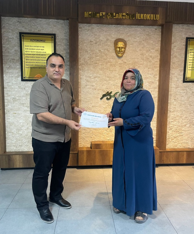Gaziantep Aile Eğitimi Okulu Projesi kapsamında okulumuzda düzenlenen veli eğitimlerine düzenli katılım gösteren velilerimize, Okul Müdürümüz Murat Erhan BOZKURT tarafından katılım belgesi verildi.